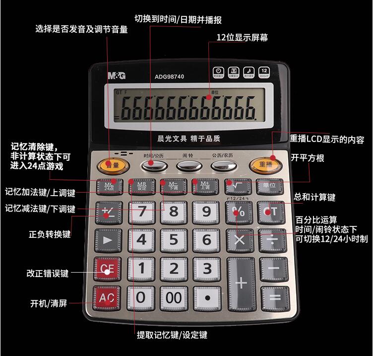 晨光計(jì)算器帶語(yǔ)音辦公用會(huì)計(jì)專用商務(wù)計(jì)算機(jī)辦公室大號(hào)大按鍵大屏幕女真人發(fā)音財(cái)務(wù)學(xué)生用小號(hào)便攜電子記算器